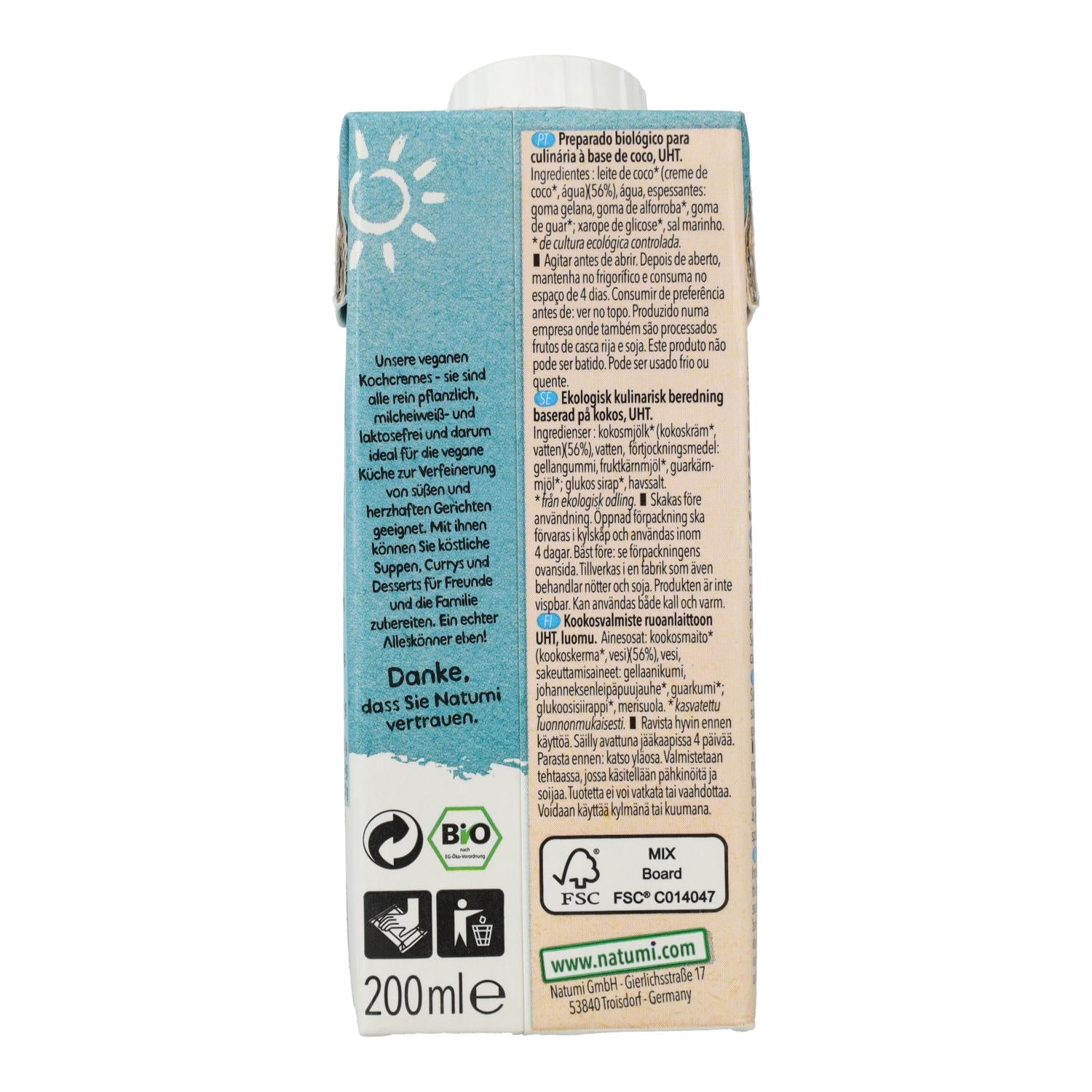 Alle Informationen über "Kokosnuss-Kochcreme Natumi, 200 ml"