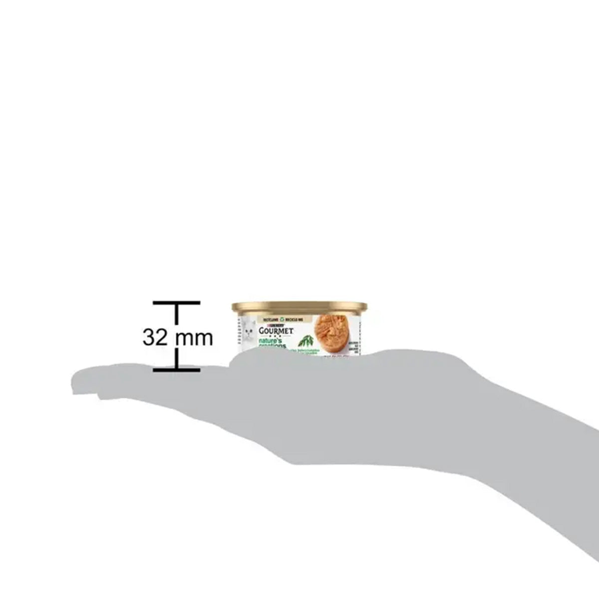 PURINA GOURMET™ Nature's Creations, reich an Thunfischflocken mit Garnelen in Gelee, Ergänzungsfuttermittel für ausgewachsene Katzen, 70-g-Dose. Mit ausgewählten natürlichen Zutaten in einer recyclebaren Dose.