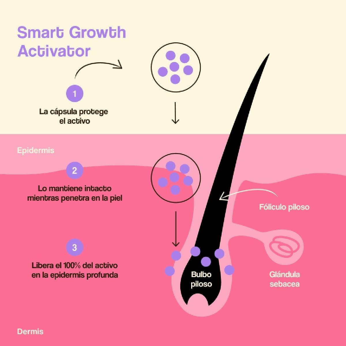 - Stellt den gestörten Haarzyklus wieder her und sorgt so für gesundes und kräftiges Haarwachstum.