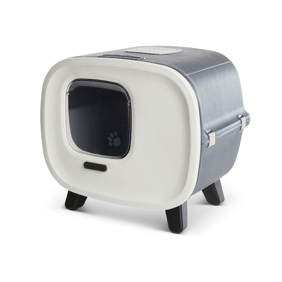Savic Katzentoilette. Endlich muss das Katzenklo nicht mehr versteckt werden! Attraktives und modernes Design aus Kunststoff mit lederähnlicher Oberfläche – ein Hauch von Luxus für Ihr Zuhause. Ausgestattet mit vier rutschfesten Füßen, einer Klapptür und einem leistungsstarken Aktivkohlefilter. Zum Wechseln der Streu einfach die Tür schließen und die Vorderseite abnehmen. Farbe: Anthrazit. Maße: 55 x 44 x 50 cm