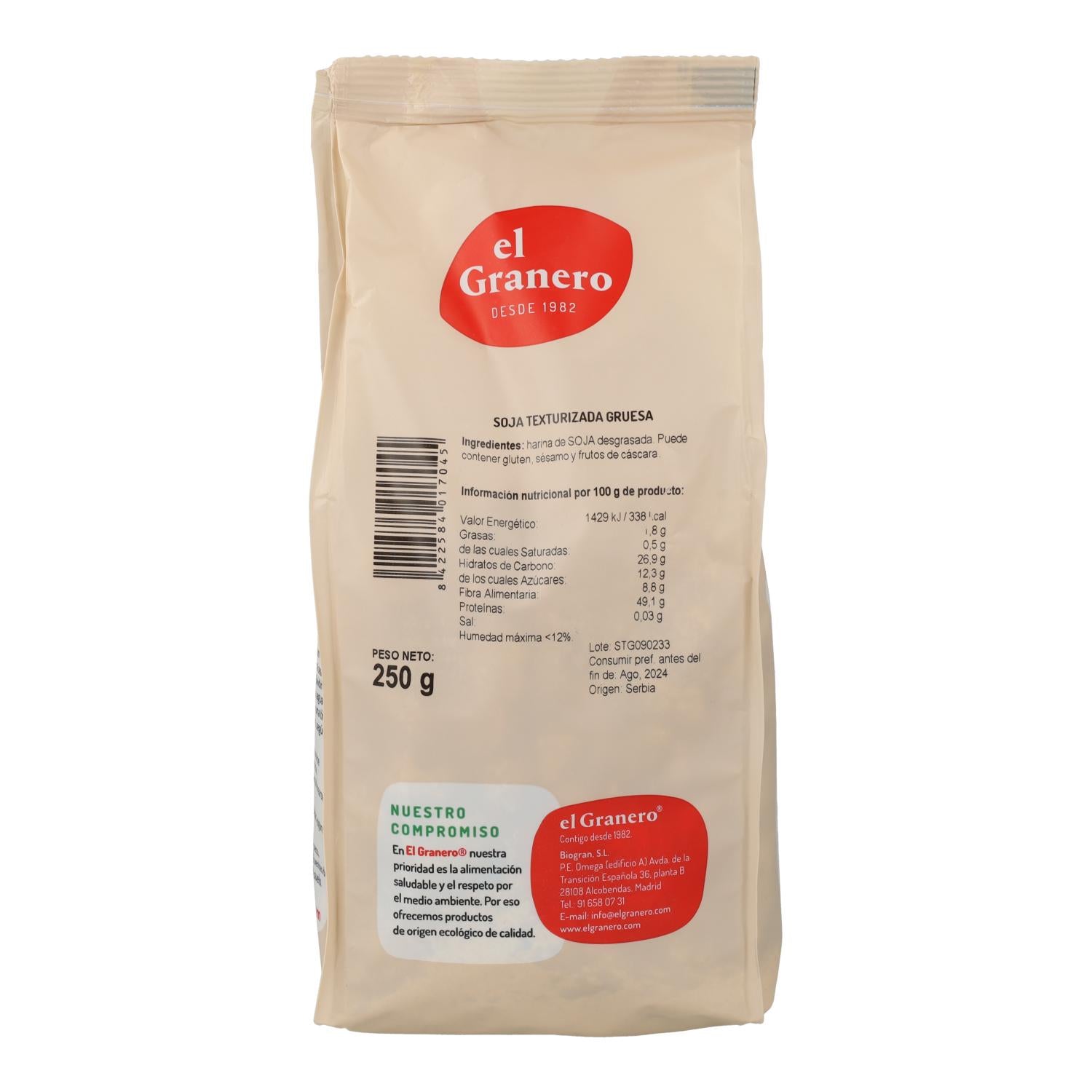 Alle Informationen über "Grob strukturiertes Sojaprotein El Granero 250 gr"