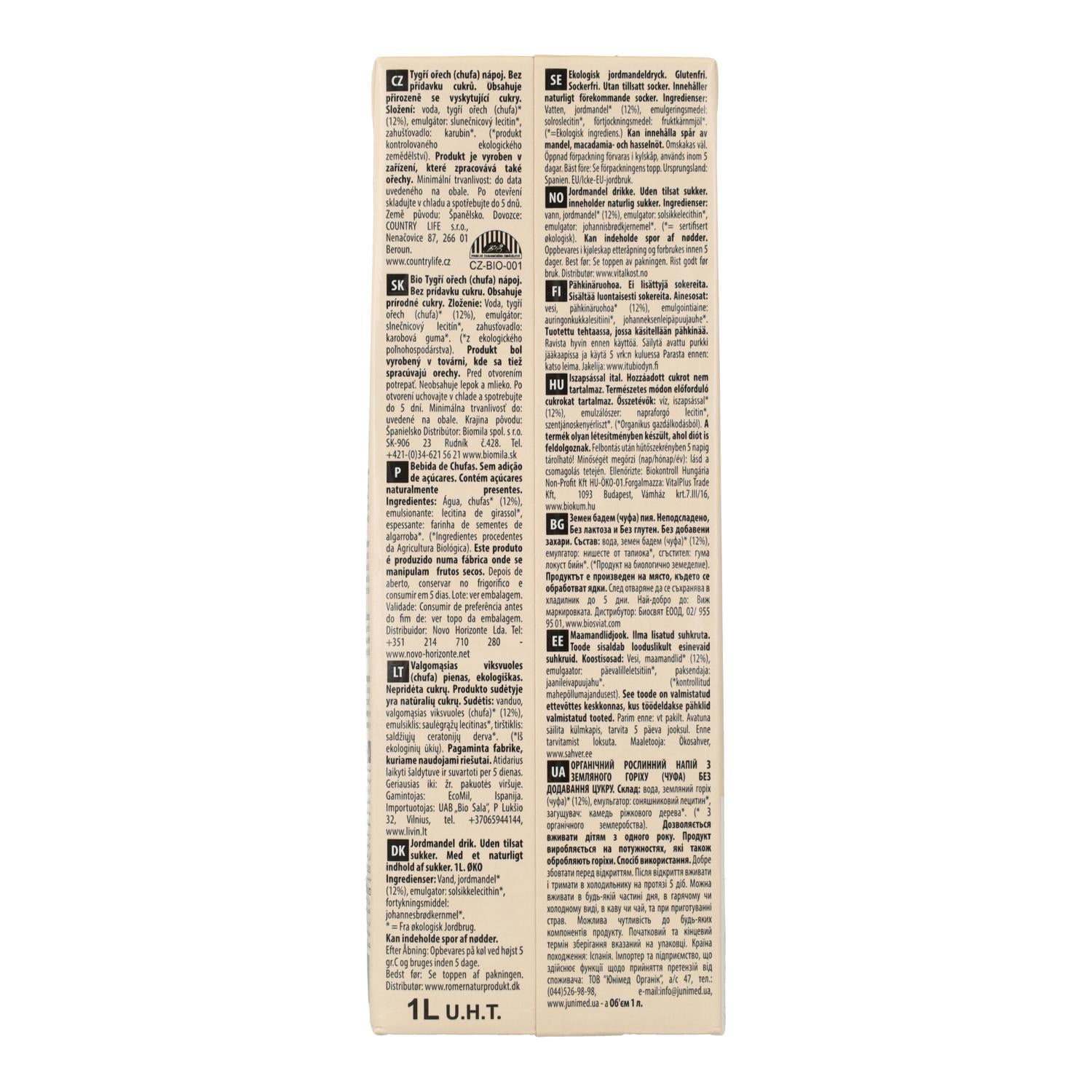 Toda la información sobre "Bebida de Chufa sin azúcar Ecomil 1 L"