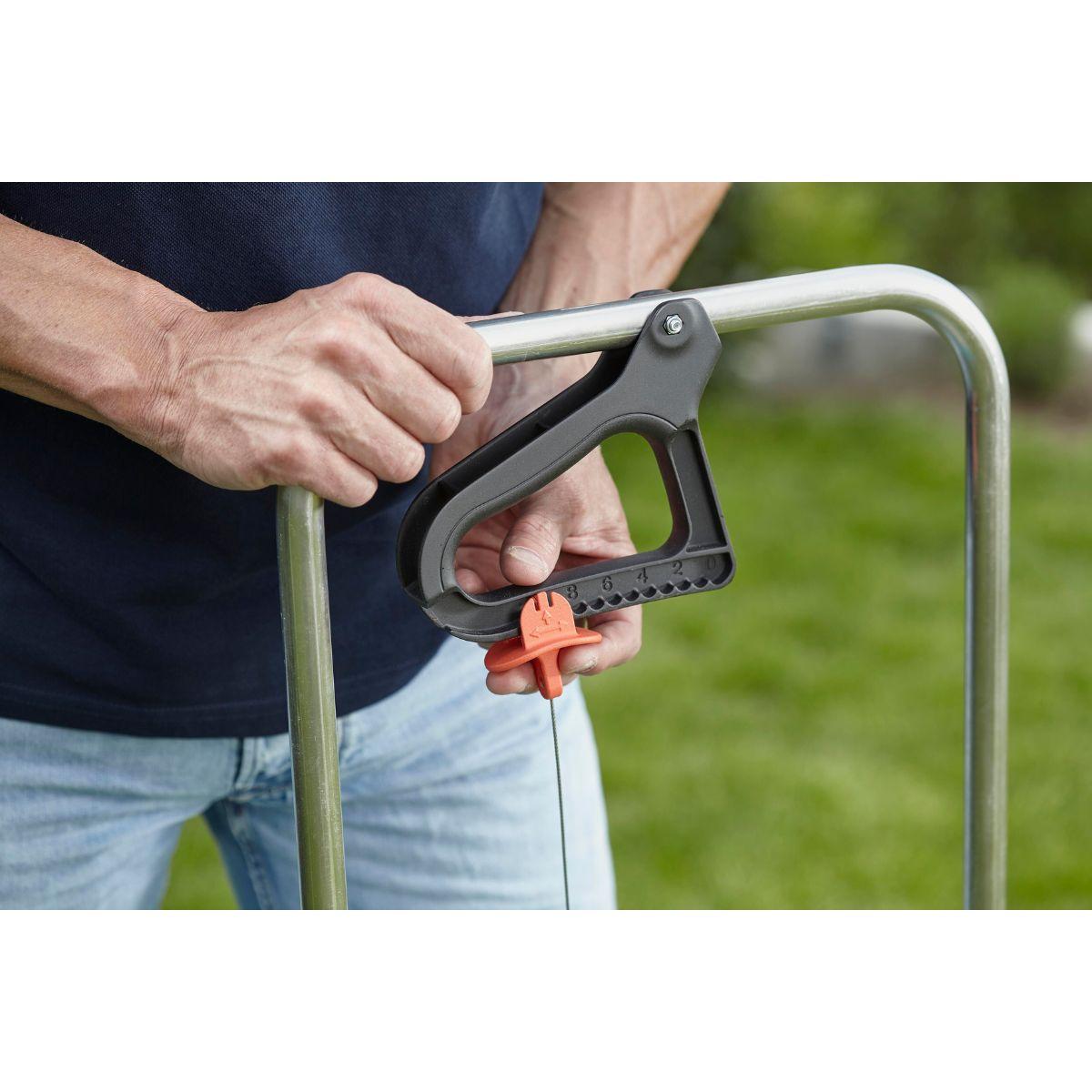 Para repartir material de forma adecuada en áreas de tamaño medio El Esparcidor de GARDENA es perfecto para echar abono o sal de carretera en áreas de tamaños medio. Se puede usar fácilmente con la función de apertura/cierre en el manillar, donde se puede ajustar la cantidad a esparcir con una apertura impermeable que reparte el material de forma precisa por las áreas que se necesita. El esparcidor se puede limpiar fácilmente con agua.