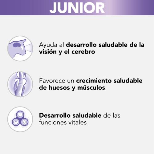PURINA® PRO PLAN® gato Junior con tiernos trozos con pavo en salsa es un alimento completo para gatitos/Características y beneficios/Ayuda a mantener un desarrollo saludable de la visión y el cerebro Desarrollo saludable de las funciones vitales gracias a un perfil de nutrientes adaptados a la fase de crecimiento