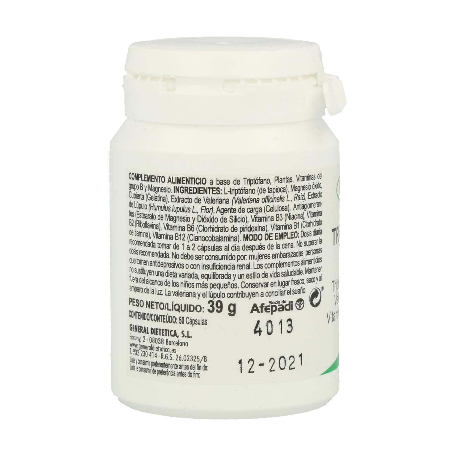 Toda la información sobre "Triptófano Plus con Magnesio, Valeriana y Vitaminas B Integralia, 50 cápsulas"