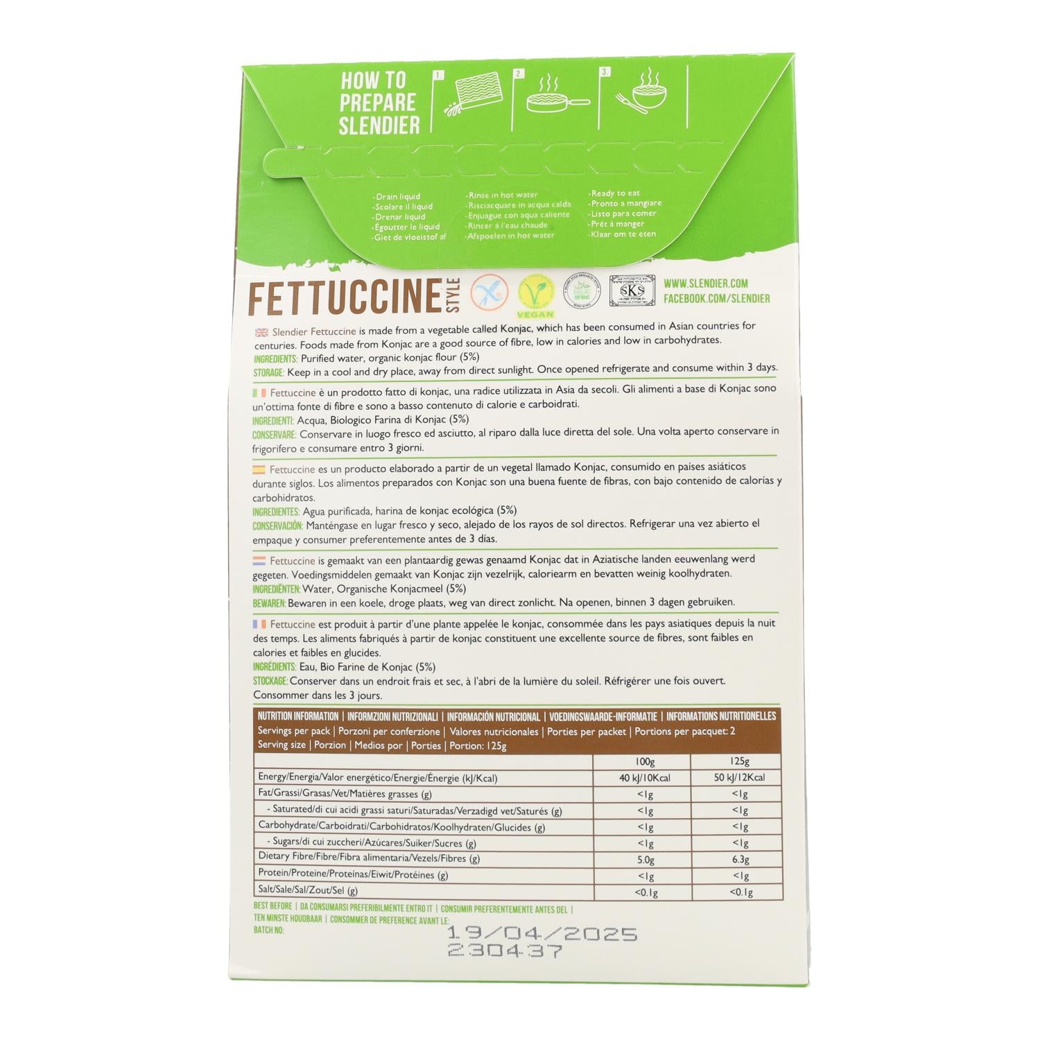 Alle informatie over "Biologische konjac fettuccini Slendier 400 g"