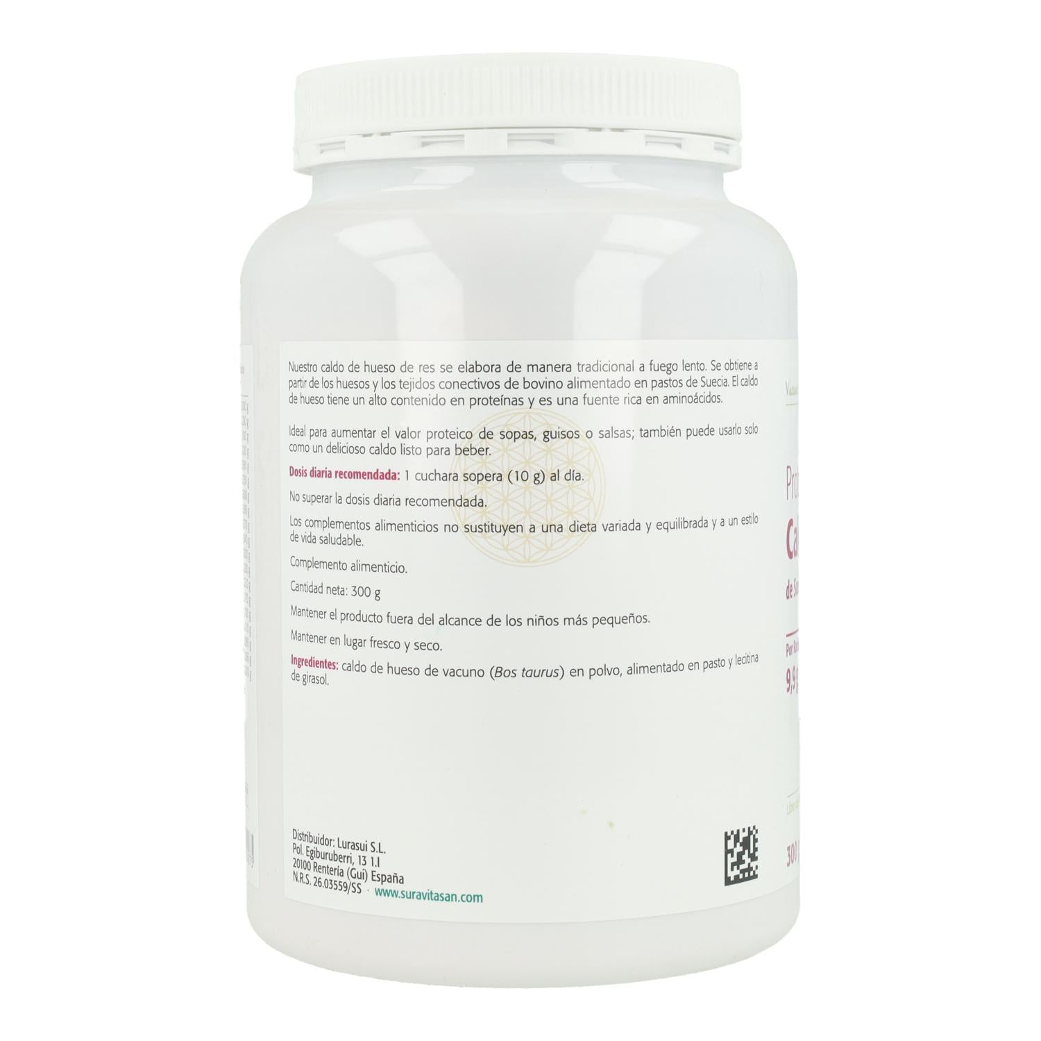 Nuestro caldo de hueso de res se elabora de manera tradicional a fuego lento. Se obtiene a partir de los huesos y los tejidos conectivos de bovino alimentado libremente en pastos. El caldo de hueso tiene un alto contenido en proteínas y es una fuente rica en aminoácidos. Con un contenido de proteína natural del 99%. Es una fuente de proteína altamente biodisponible que proporciona los aminoácidos esenciales que su cuerpo necesita, en proporciones que estimulan su metabolismo y el proceso de renovación celular. Nuestra Proteína de Cado de Hueso está testado en laboratorio con ISO 17025 asegurando así que está libre de antibióticos, de Encefalopatía Espongiforme Bovina (EEB) de hormonas.