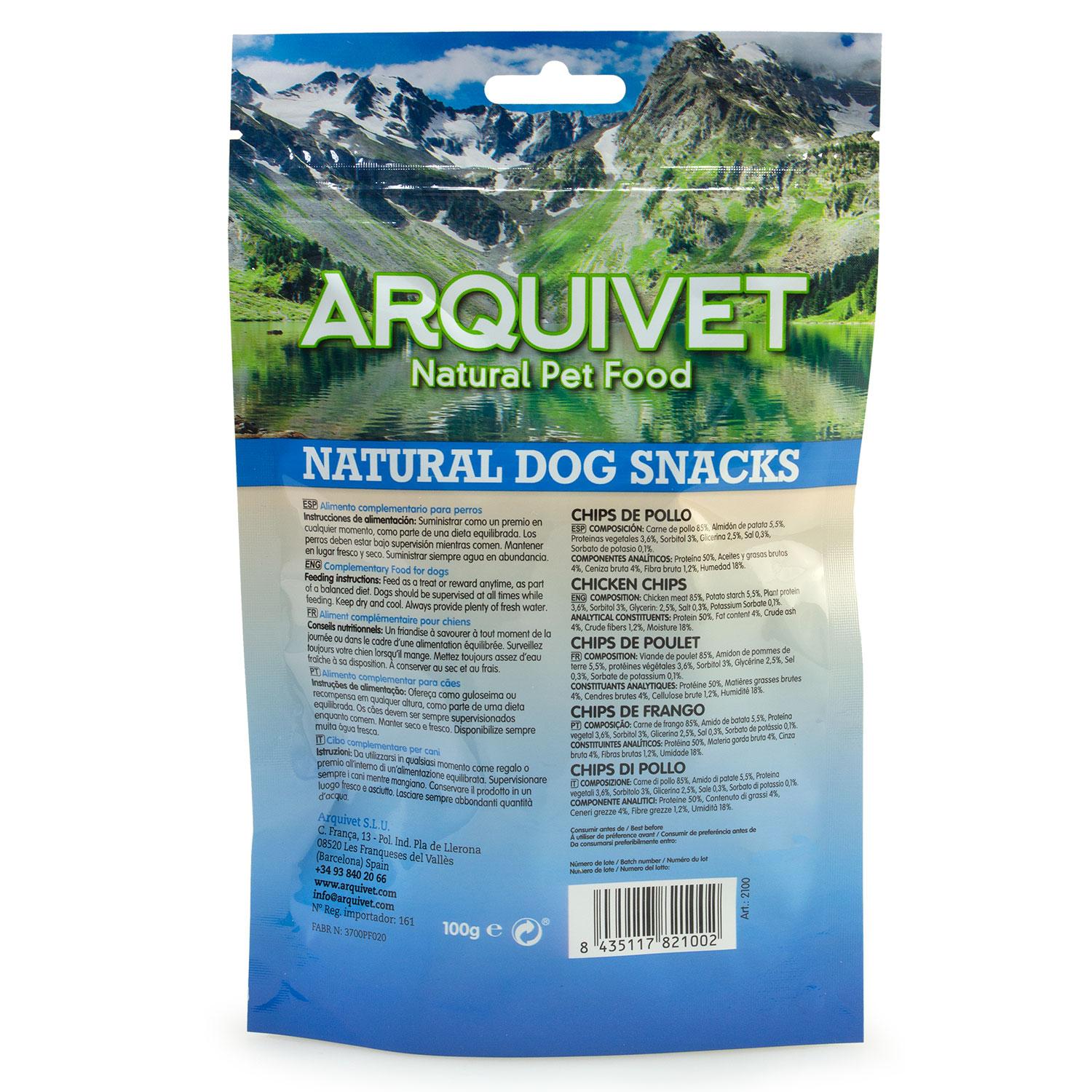 Alle informatie over "Natuurlijke snack voor honden Kipchips Arquivet 100 g"