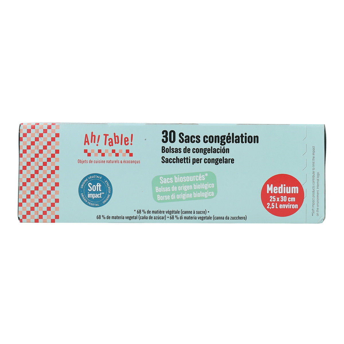 Bolsas Congelar/Conserva 25 x 30mm de AhTable bolsas reciclables, hechas de 68% de polietileno a partir de etanol de la caña de azúcar.