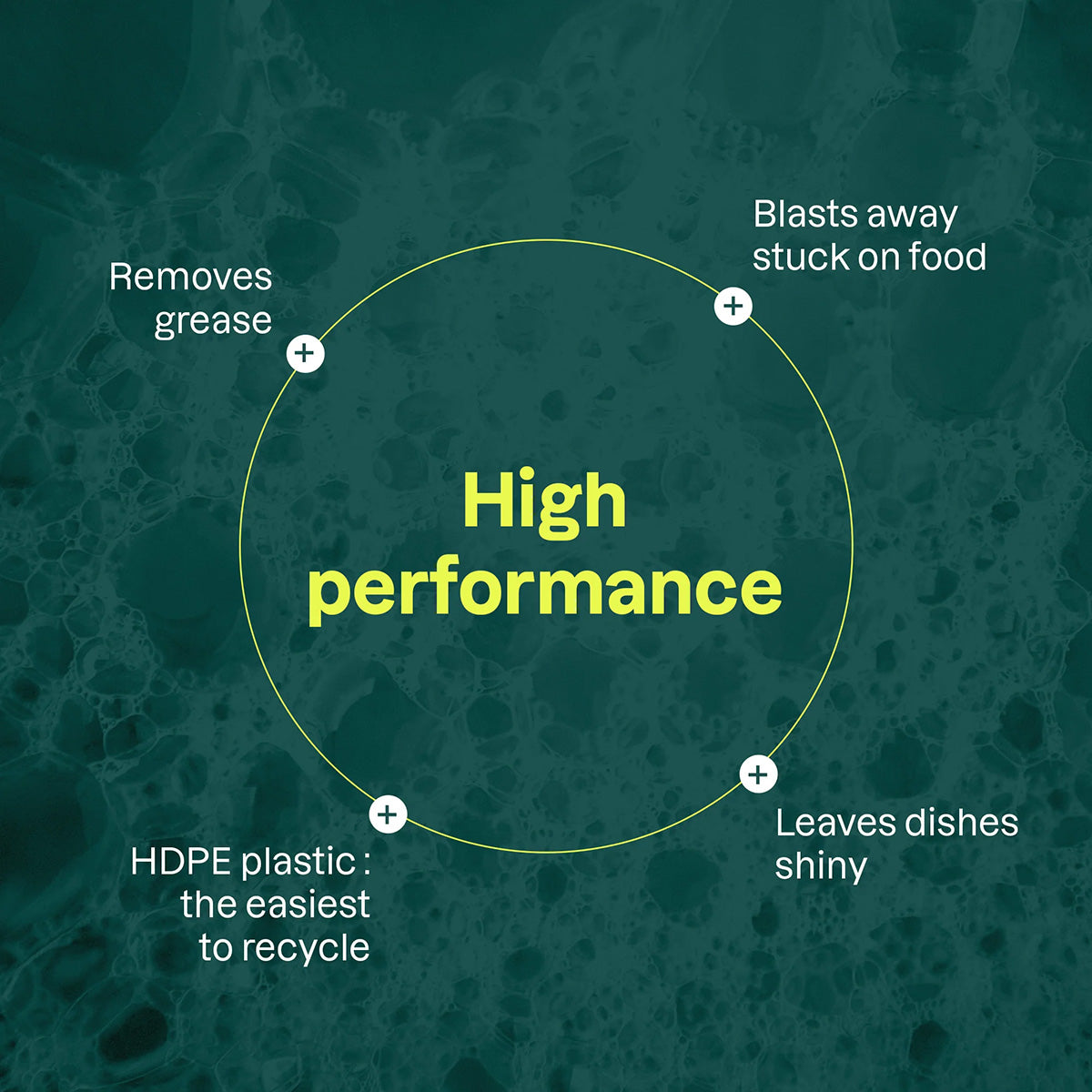 Muy eficaz para los platos, sin dañar ni la piel ni el medio ambiente ya que no deja residuos de productos químicos innecesarios.
