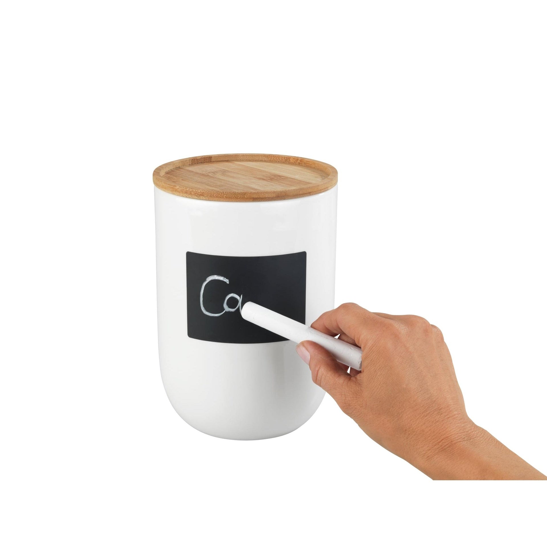 Práctico bote de almacenamiento fabricado en cerámica de alta calidad con espacio para escritura.